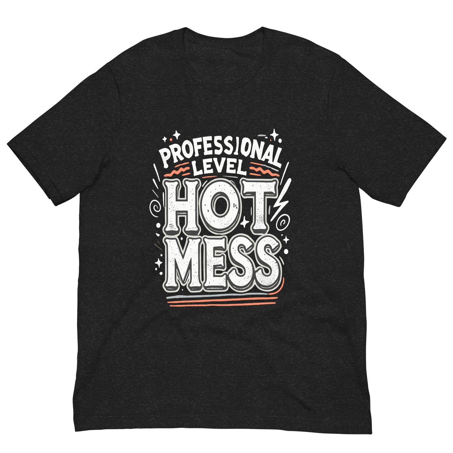Step aside, amateurs—this Professional Level Hot Mess t-shirt is for those who’ve perfected the art of stylish dysfunction. Whether juggling work, life, and three cups of coffee or just thriving in beautiful chaos, this funny unisex tee speaks your truth.
